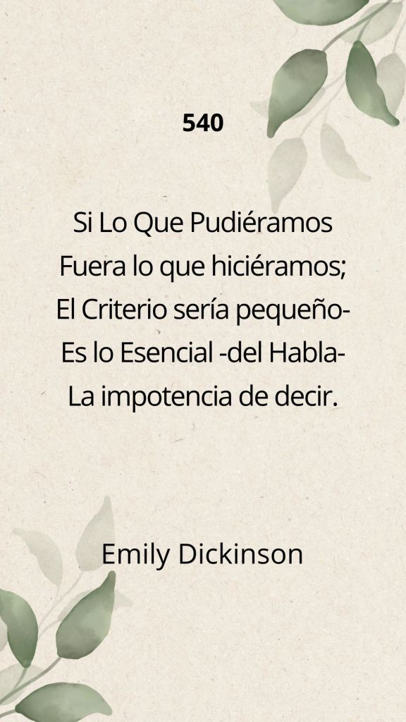 Dickinson lo dice mejor. Si lo que pudiéramos fuera lo que hiciéramos, todo sería simple. No existiría la duda, no habría desvelo. Pero la realidad es otra: entre lo que deseamos, lo que nos atrevemos y lo que finalmente hacemos se abre un espacio incómodo, fértil y doloroso. Una brecha. Allí anidan los “¿por qué no?” y los “¿por qué sí?”. Allí nacen las decisiones que pesan incluso cuando parecen pequeñas.